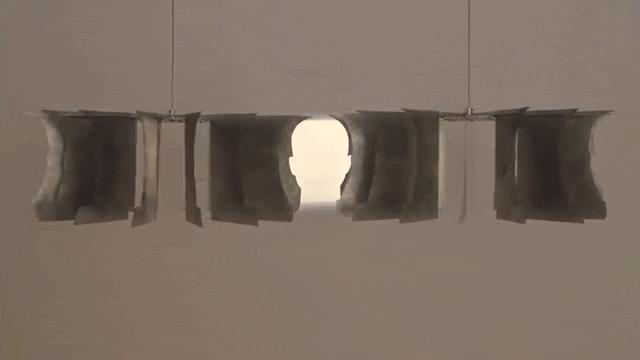 它很简单,甚至有些简陋。就是两个类似吊灯一样的装置,两边都插满了由纸片制成的“叶子”,匀速转动起来后,你会在中间看到一个正在转头的人像,就像下面这样: