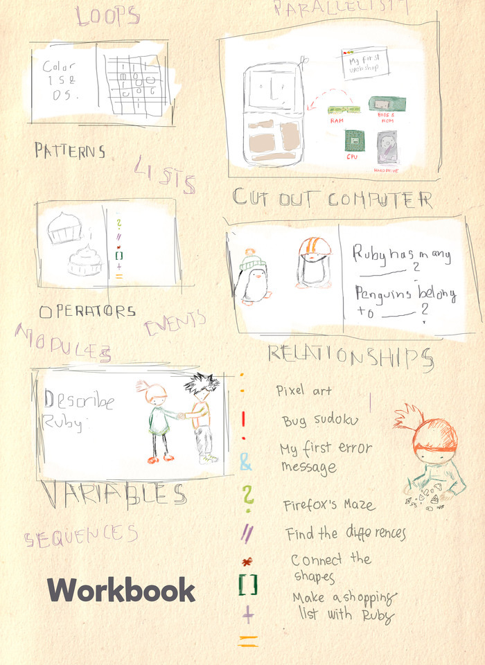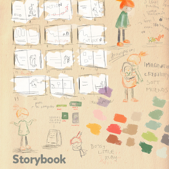 这个图书项目由两本书组成,分别是Storybook和Workbook,她们的作者Linda Liukas是位来自芬兰的萌妹子,过去三年一直在公益组织Railgirls工作,在接受ArcticStartup的采访时她说,每每遇到需要思考的时候,她都会情不自禁地用纸和笔画出一个小姑娘,就是Ruby。去年九月开始她慢慢地把Ruby带入了一个故事里,就有了现在的《Hello Ruby》。