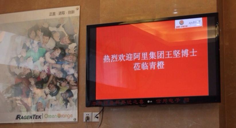 除了文字爆料,龚文祥的微博配图还选了一张貌似是青橙公司门口的欢迎横幅,上书“欢迎阿里集团王坚博士莅临青橙。”看来是阿里巴巴CTO王坚最近有专门拜访青橙上海总部。而且据说这次会面沟通长达4个小时。