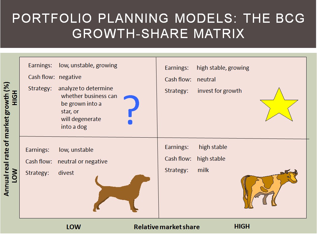 例如,BCG(波士顿咨询公司)的这个growth-share matrix(增长/占有率矩阵)就是一个很容易理解的工具——这是一个为企业寻找增长机会的市场选择矩阵。