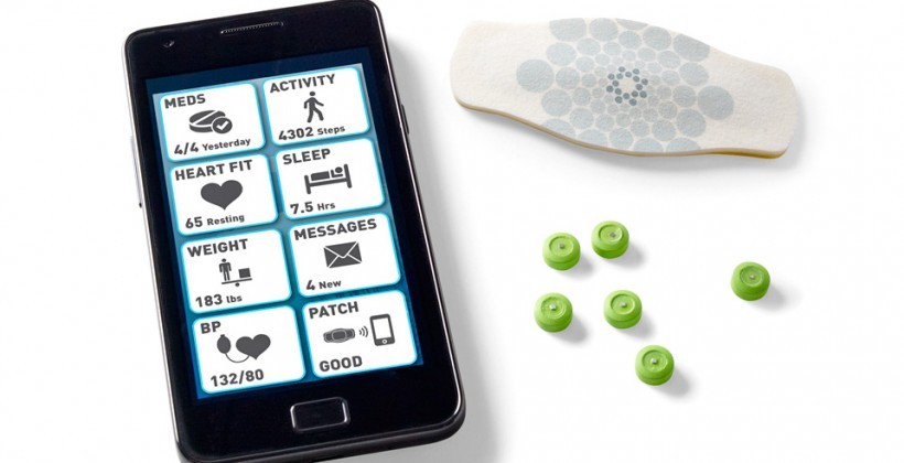 Smart Pills相当于在普通药片中加入一个可以停留在肠胃中的传感器,传感器表面积只有一平方毫米。在你吞下后,随着药片的溶解,传感器会停留在肠胃中,记录你的心跳等各项数据,再将这些数据发到贴在你皮肤上的贴纸;贴纸会将这些数据通过蓝牙传递到你的手机,平板等移动设备上,再以 App 的形式记录,展示,分析你的身体状况等。