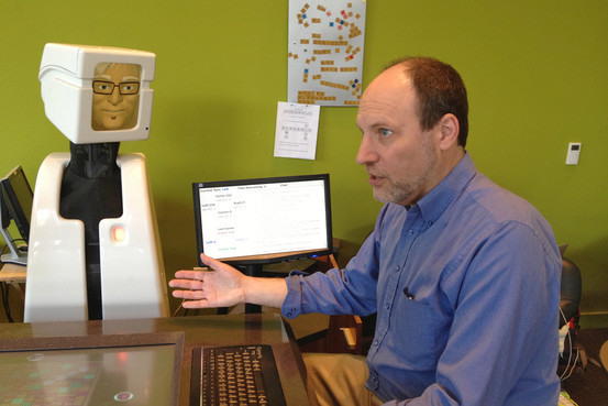 跟那些打扫卫生、洗洗衣服的“蓝领”机器人不一样,Victor的主要工作是陪人玩拼图游戏,但他是个废话篓子,“有时候,我恨这个游戏。”“因为你是人类,所以我猜你觉得这是步好棋。”可当下棋赢了的时候,Victor也会牛B轰轰的吹上一把,“我就是Scrabble之王—Victor the Mechanical Marvel。“