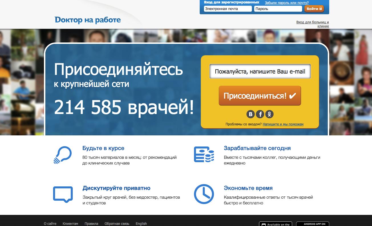 Doctor At Work采取实名制,已经有超过20万名医生注册,覆盖了俄罗斯超过20%的医生。Doctor At Work能为医生提供医学文献、临床病例以及职位搜索,并支持与同行进行交流或者问答,目前Doctor At Work的用户每月会生成超过10万条评论或是医学类刊物,并且已经拥有iOS以及Android客户端。