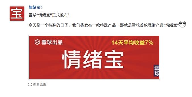 这不雪球今天刚刚推出了首款理财收益产品“情绪包”么。根据雪球的数据,当某只股票首次进入“雪球热股榜”后,它的股价在短期内会出现剧烈的震荡,而“情绪宝”这款产品,即主要根据上述规律打造。“情绪宝”购买的公司均锁定为首次进入雪球热股榜的股票,卖出时间锁定为买入的两周之后。根据之前的数据,买入2013年81只首次进入雪球热股榜的A股股票,统一两周后卖出,最后平均收益率达到惊人的7%。