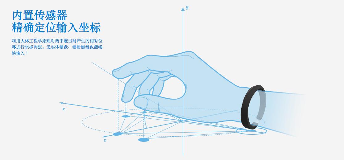 这么一来,搜狗的“Typany智能输入环”简直弱爆了......是的,搜狗今天发布了一款“Typany智能输入环”,利用人体工程学原理对两手敲击时产生的相对位移进行坐标判定,以大数据和云输入为基础,结合拼音组合的规律,反馈给用户最精确的输入结果,可以将任意平面变成键盘。带上该手环后,可以随时调起输入法,不受任何条件的限制,并且手环支持和手机、平板、电脑、电视进行连接。