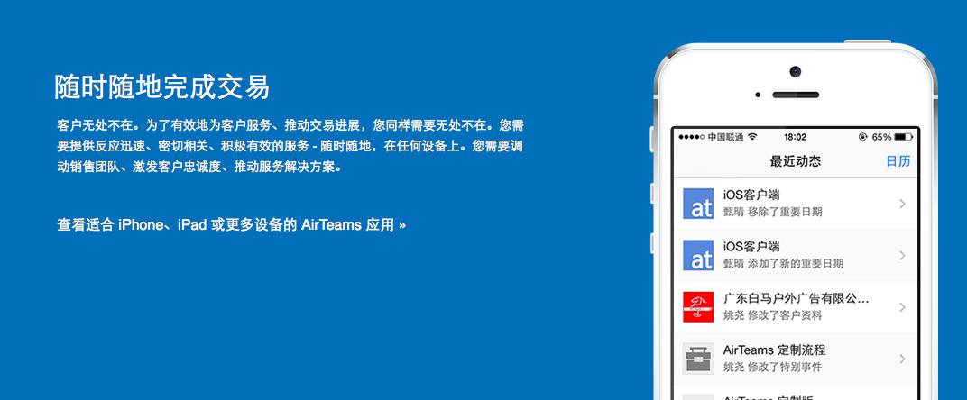 AirTeams的核心是客户清单、日历、业务机会这三项服务。