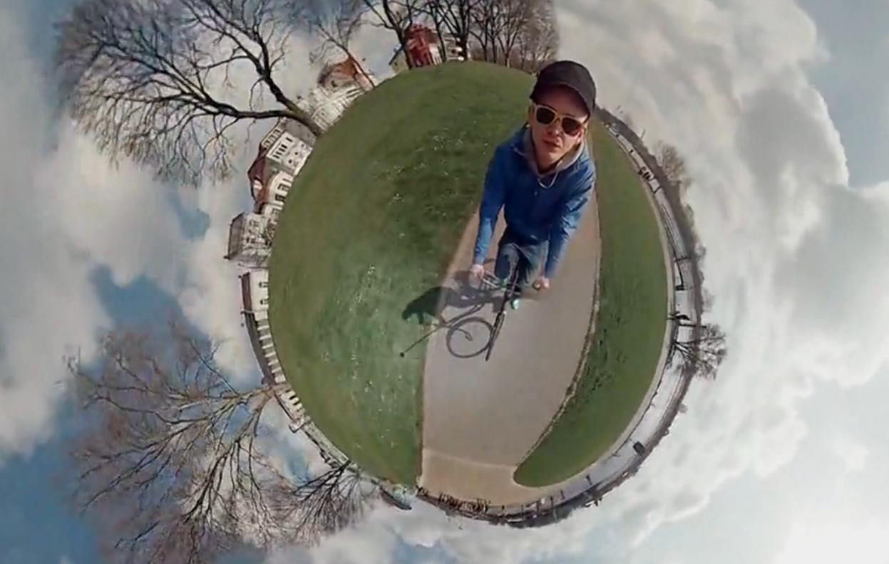 与6个GoPro相机结合,这个装置拍摄到的景象像是被微缩化在一个“小星球”上,离拍摄装置最近的景物就像是位于这个“小星球”的中心,其他的像是这个“小星球”的空间背景。