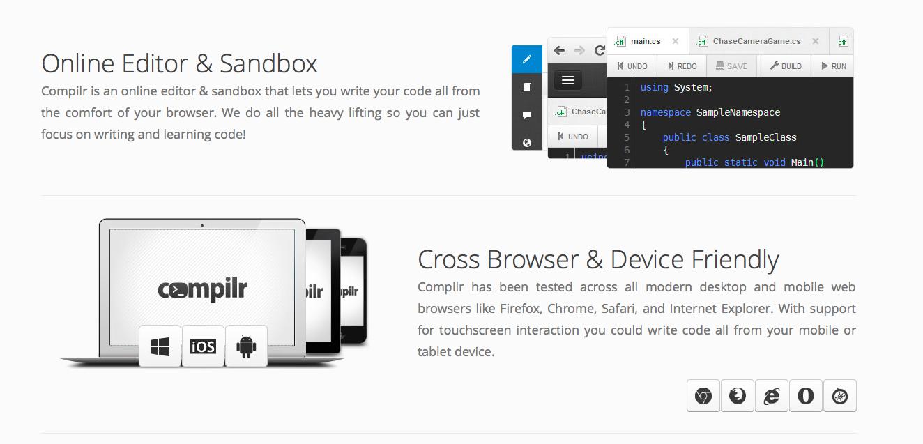 可能Compilr不算特别知名,这是一家加拿大的编程教学网站,其特色在于在线的代码编程器,学习者在这个编辑器里写的代码可以直接在云端运行,而不需要在本地部署编程环境(和Codecademy也类似),这样一来使用Compilr学习时可以边学边练,甚至还可以为自己的Compilr代码编辑器换一套自己喜欢的主题。