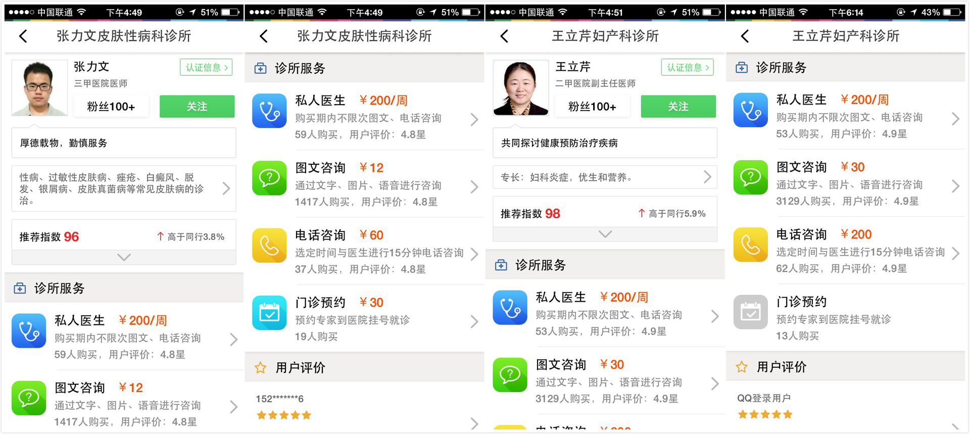 打开现在的“春雨医生”APP,最直观的感受就是,所有的服务都将“医生”放在了非常重要的位置。而事实上,医生提供的医疗服务本身就具有差异性。即便是在同一个医院里,坐诊30多年的老专家和刚走上工作岗位的年轻医生、做了20年胃全切的外科医生和刚从协和医学院毕业的高材生,他们对于疾病的认识以及处理方式,绝对不可能通过简单的“专家号”与“普通号”来进行区分,但现实是,我们总是奔着响亮的医院牌子去瞧病,对于真正为我们提供医疗服务的医生们,却并没有一个直观的了解手段。