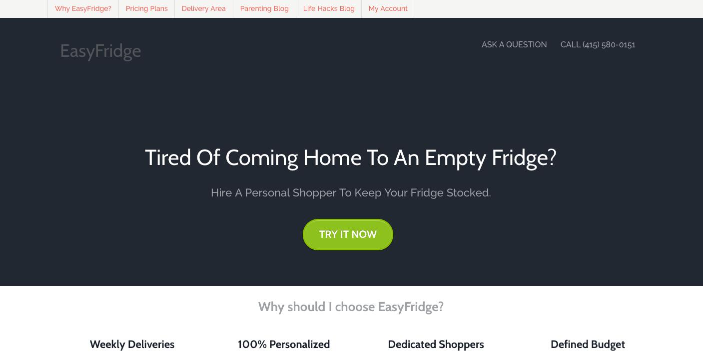“EasyFridge”是一个加利福尼亚创业公司,他们为用户提供生鲜食品买手雇佣服务。用户可以在其网站上雇佣一位精通购买生鲜食品和日常杂货的买手,这个买手会根据用户的需求每周固定地为用户购置食品和杂货,并直接配送到用户家中。