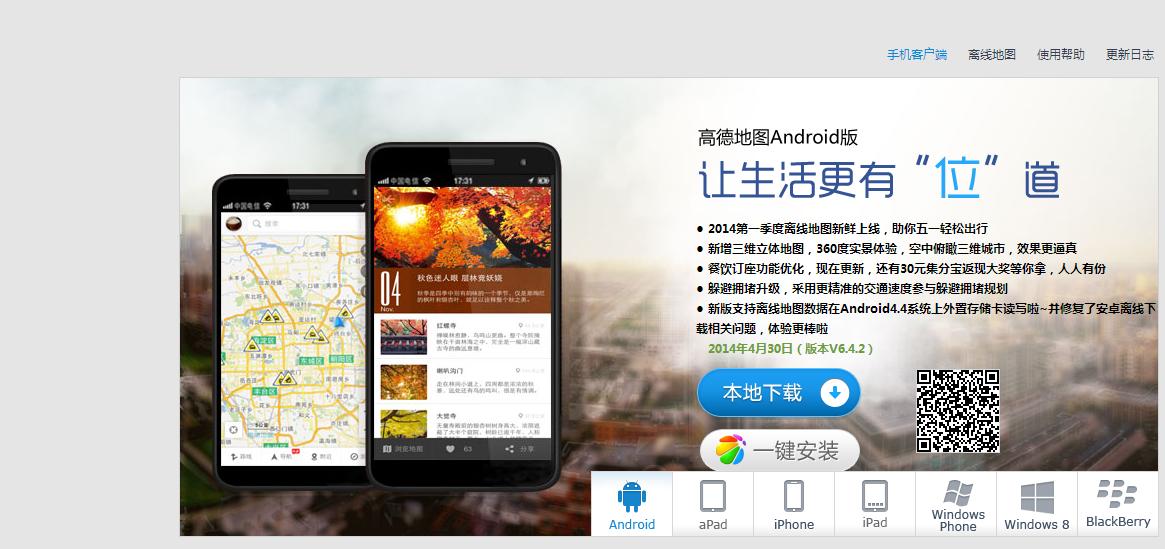 高德地图新增三维实景手机地图,优化了餐厅订座功能,未来会与商家合作探索O2O模式