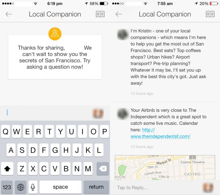 Airbnb 从2011年就开始提供目的地咨询服务,用户可以拨打热线对接一位当地人。但是现在这种应用内咨询的体验是全新的,并且非常易用,地图服务也可以更好地接入到服务中。
