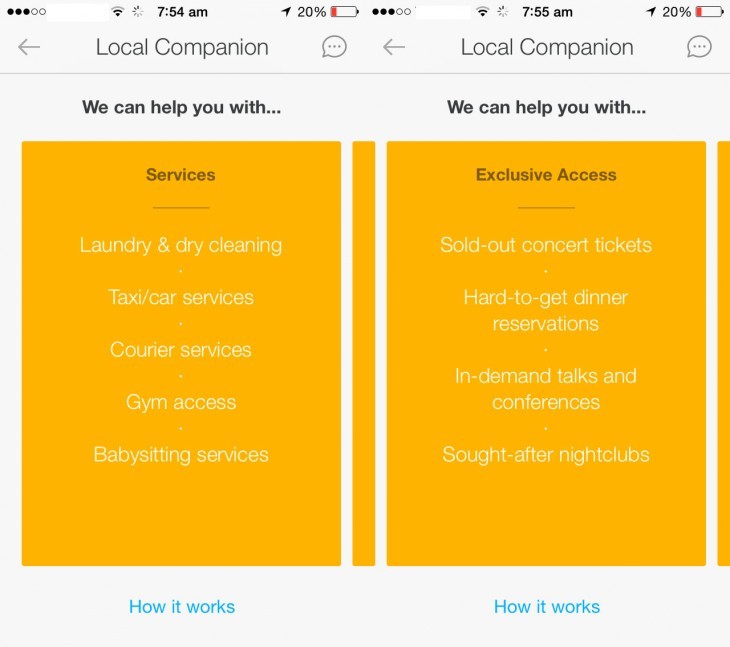 这项功能可以提供一系列的服务,包括洗衣、租车、快递、比赛门票、婴儿照看、已售罄的音乐会门票、很难预定的餐厅、热门讲座会议以及受欢迎的夜总会。