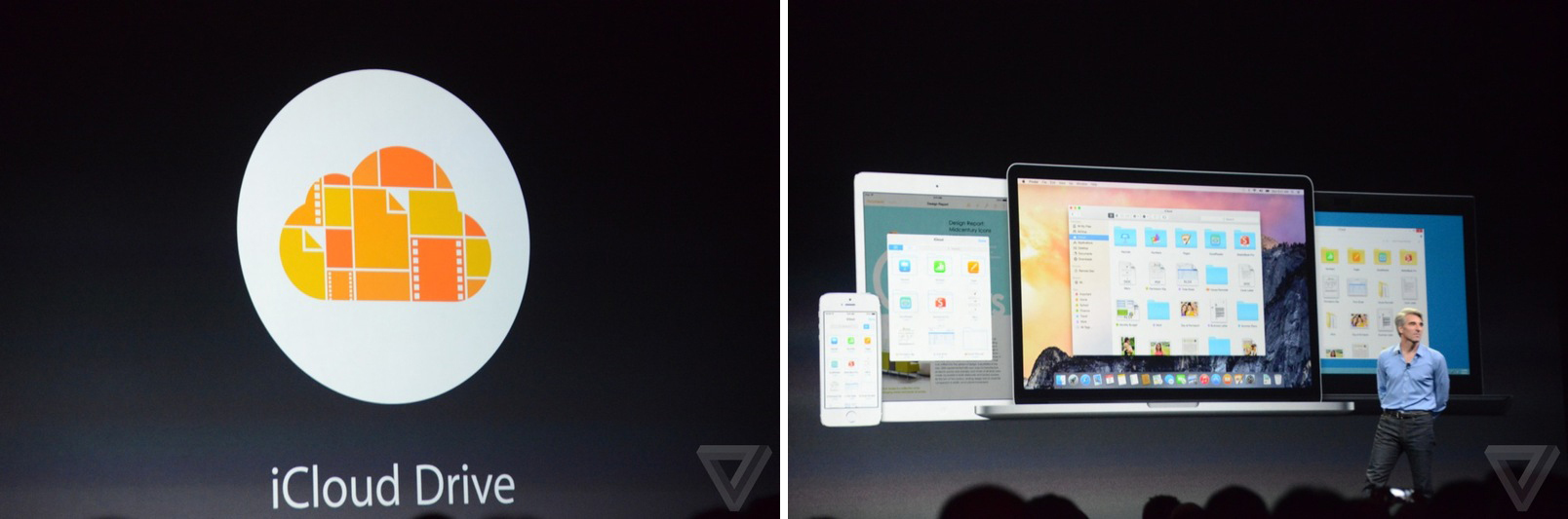 此外,苹果还发布了新的 iCloud Drive 云服务。类似 OS X 平台上的 Dropbox,用户的所有的文件都可以被存储在 iCloud 本地文件夹中并在 iOS、OS X 或 Windows 平台之间同步更新。