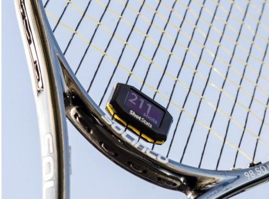 Shot Stats 看起来像一款减震器,可以粘贴在网球拍上,记录运动数据。用户可以通过触摸屏,查看数据,也可以通过手机查看更加详细的数据。比较有特色的一点是,其他用户可以利用配套应用内的摄像头,对比赛进行慢动作录像,Shot Stats会把记录下来的数据会叠加到视频上,让你看到每次挥拍究竟是什么样的效果。