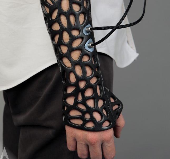 这款3D绷带是由土耳其的一名学生Deniz Karasahin设计开发的。这种绷带与传统的石膏绷带外观完全不同,采用的是类似骨骼的镂空设计。