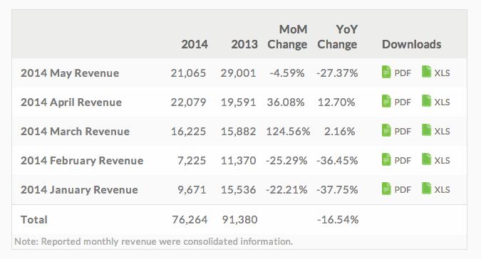 刚刚过去的春季对于手机厂商来说是一年中难得好时光,但是 HTC 却错过了这一时段,五月份数据的下降幅度已经超过了去年以及前年的同期水平。截止目前为止,HTC 营收数据的年同比下降幅度已经达到了16.5%。