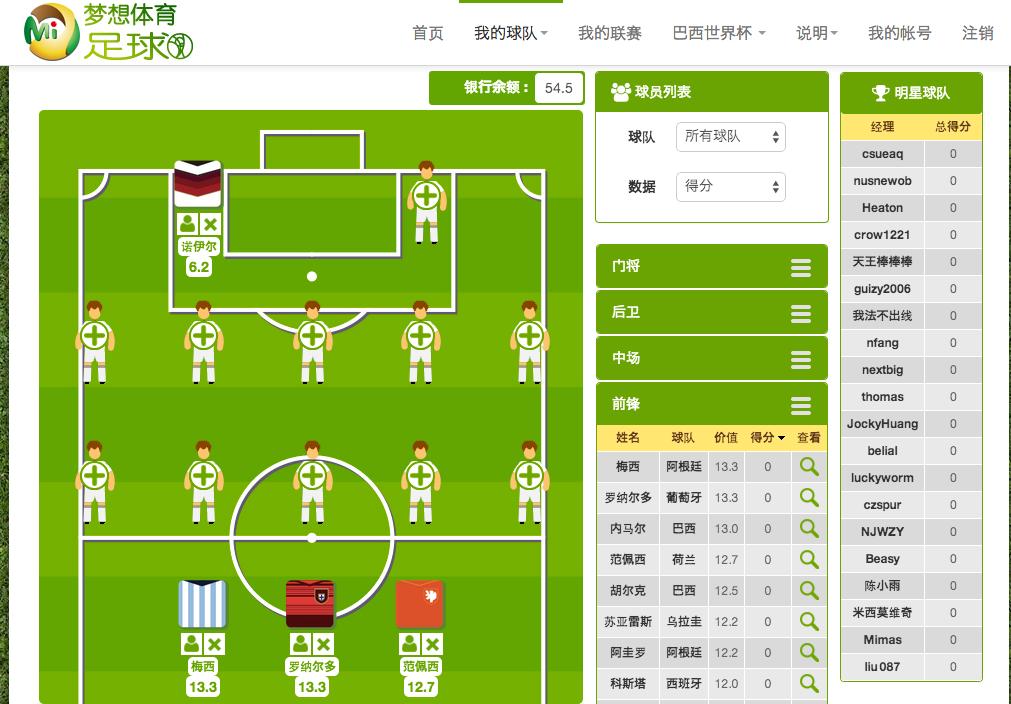 怎么做的呢?以世界杯为例,作为一个荷兰球迷,我喜欢荷兰队这支队伍,但我可能对它的中后场球员不太满意,在“梦想体育”中,我可以根据自己的喜好,换上几个我自己的看好的其他国家的球员,组建一支属于自己的荷兰队,而当世界杯比赛正式开始之后,每轮比赛,每个国家的每位在场球员,都会产生属于自己的评分,评分指标包括进球、助攻、传球准确率等等,“梦想体育”会根据每位球员的评分,给我所组建的荷兰队的整体评分。