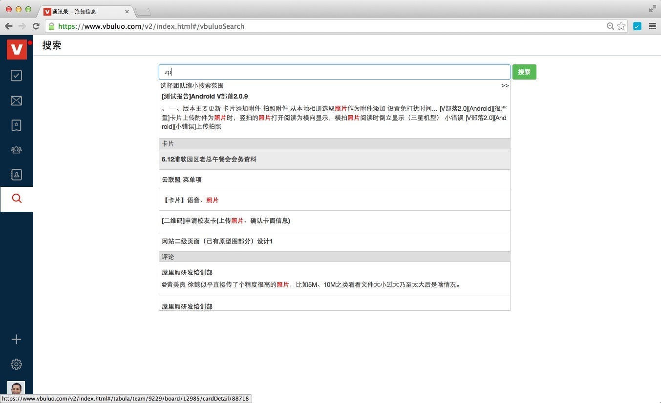 至于成员“该如何提高自己的效率”,一方面V 部落会根据行业来提供不同的模板,比如周例会、客户服务、敏捷开发等,来帮助团队提高效率。同时, V 部落的“文章”(即团队知识库)和搜索功能同样也是提高团队效率的有效手段,在采访中,V 部落创始人及CEO 谢殿侠表示,目前搜索功能暂支持全文检索功能,可以搜索任务、文章、附件、评论、项目、团队等内容,未来当团队中的个人贡献的文章等足够多时,评价信息也积累到一定量级时,搜索中的People Rank权重将优化搜索排序结果。