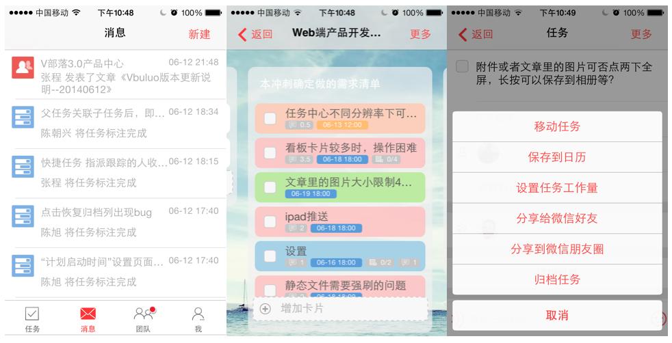 团队协作工具 V 部落(Web/iPhone/iPad/Android) 也是众多帮助企业提高效率的协同工具之一,今天其 3.0 版本正式上线,在产品形态上,从原先的只是知识沉管理和效率管理并举,演化成以帮助企业提高效率为主,知识沉淀作为提升效率的辅助功能。