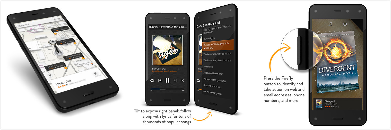 但真正使 Fire Phone 成为一款亚马逊手机的功能还要是所谓的 Firefly 技术:Firefly 可以识别超过 1 亿件物品,无论是音乐、视频、食物、衣服……只需用手机扫描一下感兴趣的物品,Fire Phone 就可以立刻给出购买选项。