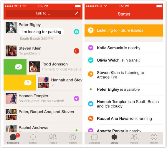 和现在多数社交网络很像,Path终于也选择走上社交网络+一款聊天app的道路。Path发布了一款独立的message app “Path Talk”,可以用于实时通讯。