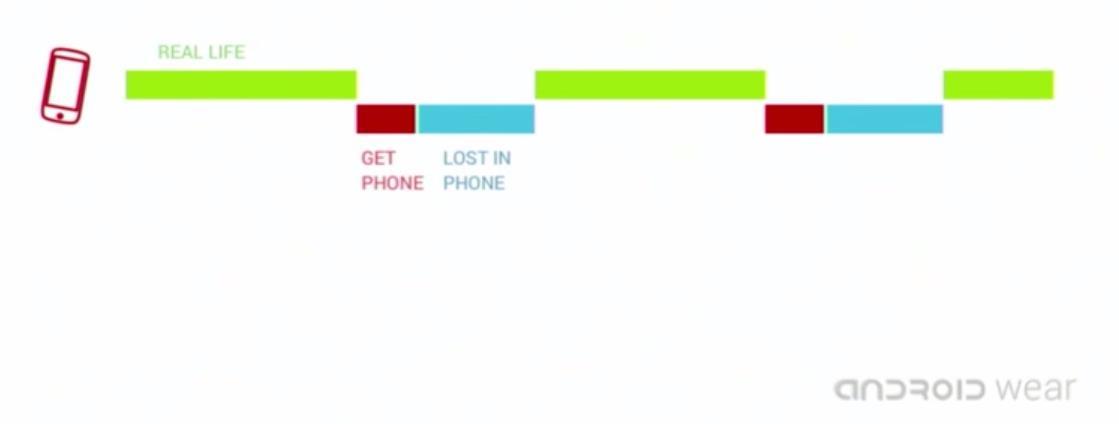 之前Google在一段介绍Android Wear的官方视频中也明确表达了这个观点,并且用一种形象的方式向大家说明我们每天浪费了多少时间在掏手机这件事上。