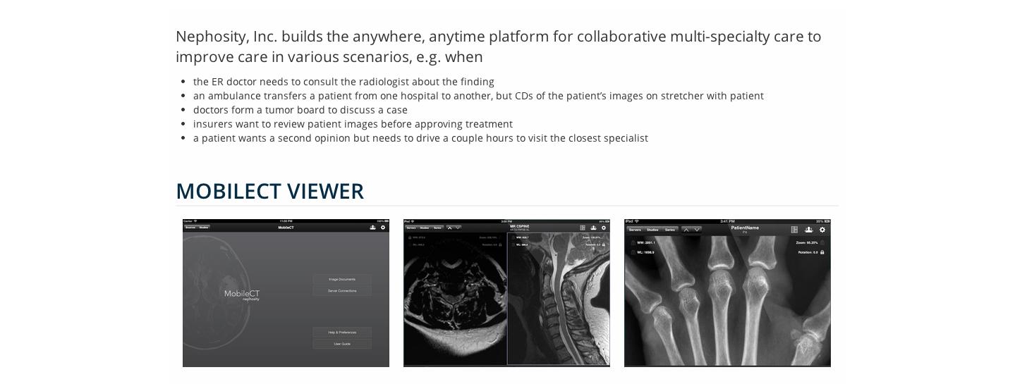 解决方案是 iPad 应用、移动CT机,随时随地查看影像资料、高清晰度保证图像的高分辨率以及清晰度。
