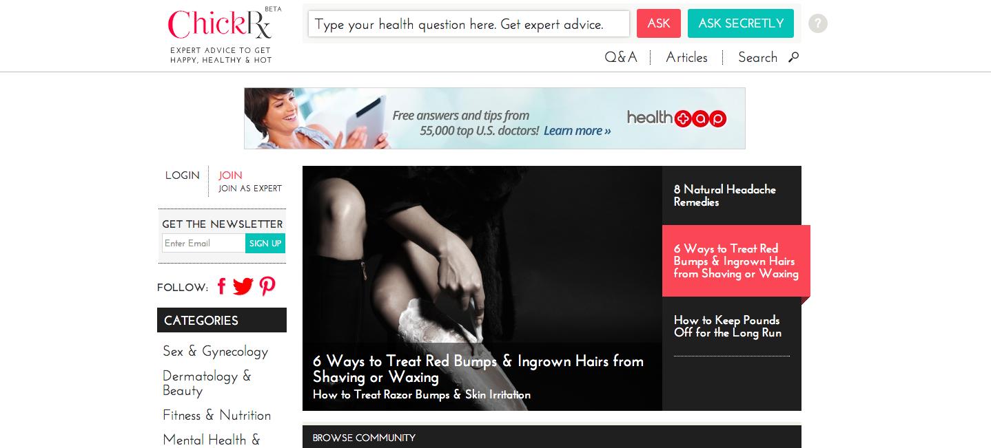 ChickRx 是一个专为女性用户服务的问答社区,并在这个平台上引入了专业的医生和药剂师,为用户提供专业的用药指导或是疾病建议,以及产品和服务的购买推荐服务,是一个目标用户群明确,并且具备较强变现能力的服务社区。