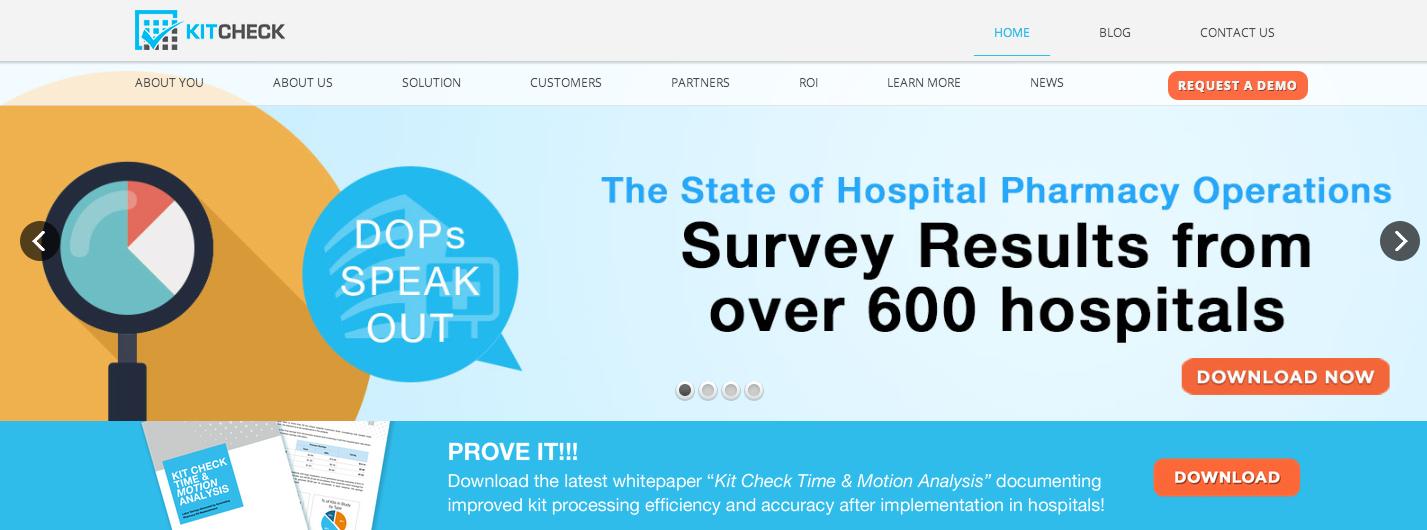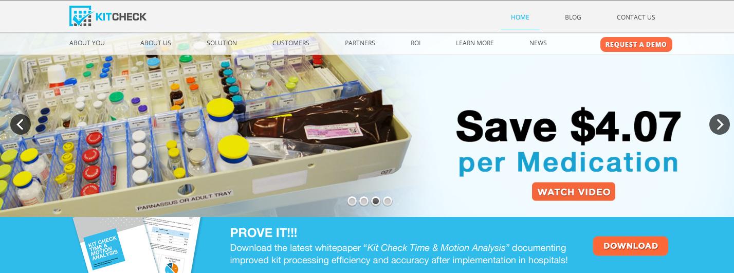 Kit Check 是世界上第一个,也是目前为止唯一一个专注于提升医院药剂科试剂盒传递效率,并降低出错率的服务。它可以将传统过程中平均花费20到30分钟的过程缩短至几十秒。Kit Check 开发了一整套的软件系统,并且试剂盒使用近场通讯标签,软件系统容易安装,维护简便,可以大幅提升药剂科工作效率。前文亦有详细介绍。