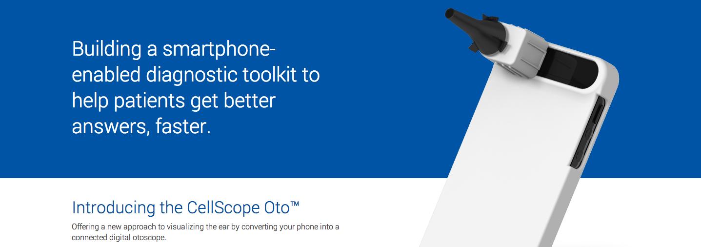 CellScope 通过设计一个手机摄像头套件,将传统的手机摄像头转化为专业的耳道内窥镜,用户可以方便地使用手机来向医生传送高质量的耳道内镜照片,用户可以在家接受较为专业的诊断治疗。