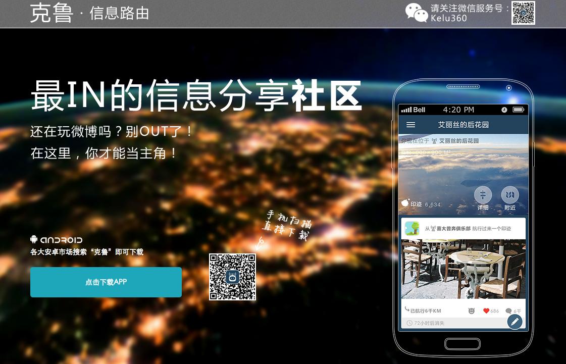 “克鲁”是一个基于地理位置的社交服务,他们将地球分成了很多个900mX900m的“格子”,每个格子有一个“信息路由节点”,每个用户打开“克鲁”,都会进入一个节点,用户可以命名这个节点,在节点里发布信息,旁边的节点能够看到这个节点发布的内容,然后点赞,然后这个点赞行为会帮助信息传向更多的节点,总而言之,对单条信息来讲,越多的“赞”意味着被更多的“节点”接收。