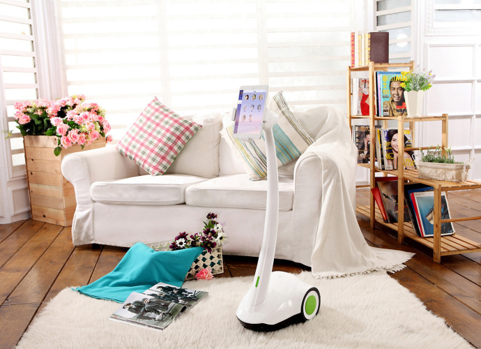 简单来说,PadBot 是一款可以远程控制的机器人,由三部分组成:机器人、配套的智能终端应用 PadBot、平板电脑(iPad 和 Android 电脑都可以)。PadBot 外观为白色,大约 90CM 高。不过它没有自己的“脑袋”,而是通过蓝牙连接一个 7 寸—10 寸平板电脑,充当你的“脸面”。头部可以活动,上下活动的夹角都可以达到 30 度,人机交互会比较友好,也可以获得更好的视角。