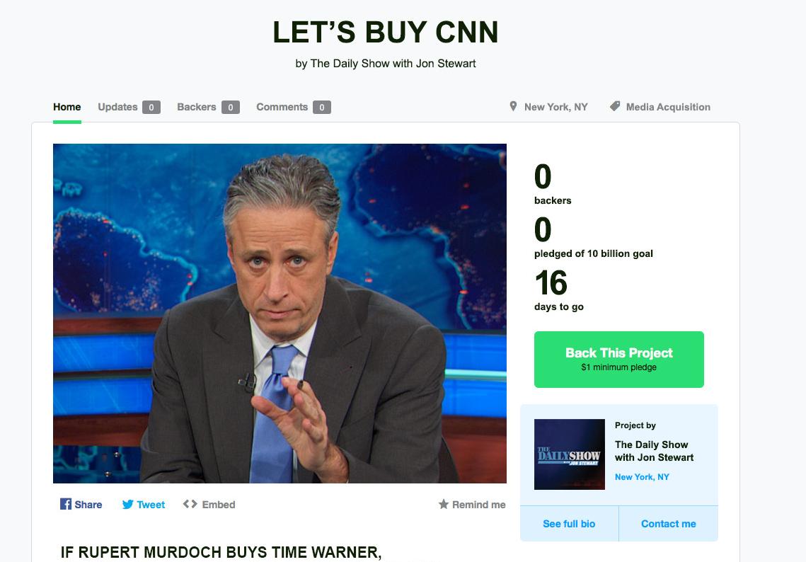 看到这个山寨Kickstarter网站肝颤了一下的请举手!没错美国“Daily Show”主持人Jon Stewart 就是用这招发誓要买下CNN!这情怀……有些酸爽。