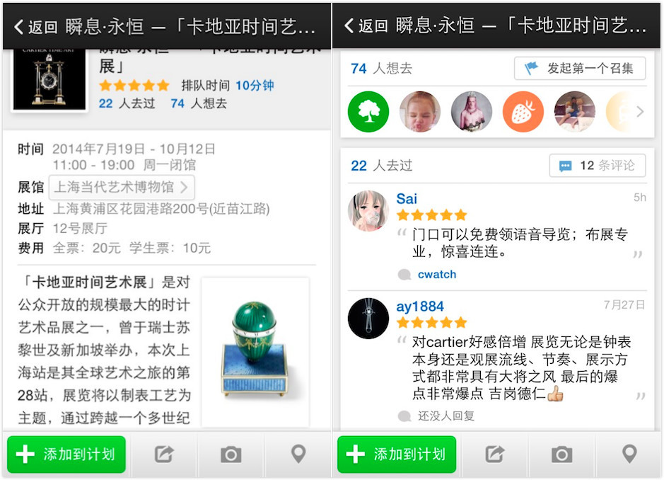 我相信无论是周末喜欢在城内折腾些不一样生活的人,还是出国玩儿总要探究别处深沉意味的人,逛博物馆和展览应当是实现愿望的良好途径。这个时候我们就会希冀有一款产品:可以聚合展览信息、告诉我门票几何、帮我规划日期、甚至可以呼朋唤友同去……