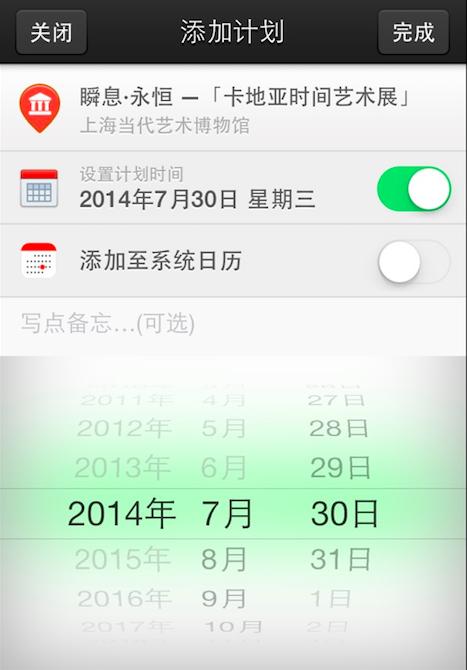 四叶新媒体在半月前推出的iDaily Museum(iOS)正是这样的产品,从内容属性来看,它是全球不同城市、各类展览的展览画报。而在工具属性上,这个app可以基于LBS定位同城附近的展览,一旦你看到心仪的展览,便可以将该展览添加到自己的日历里。没伴的话,还可以在每个展览下面发起“召集”,找到同去之人。