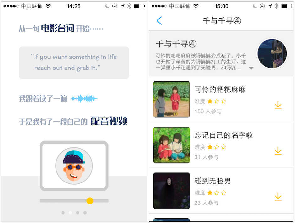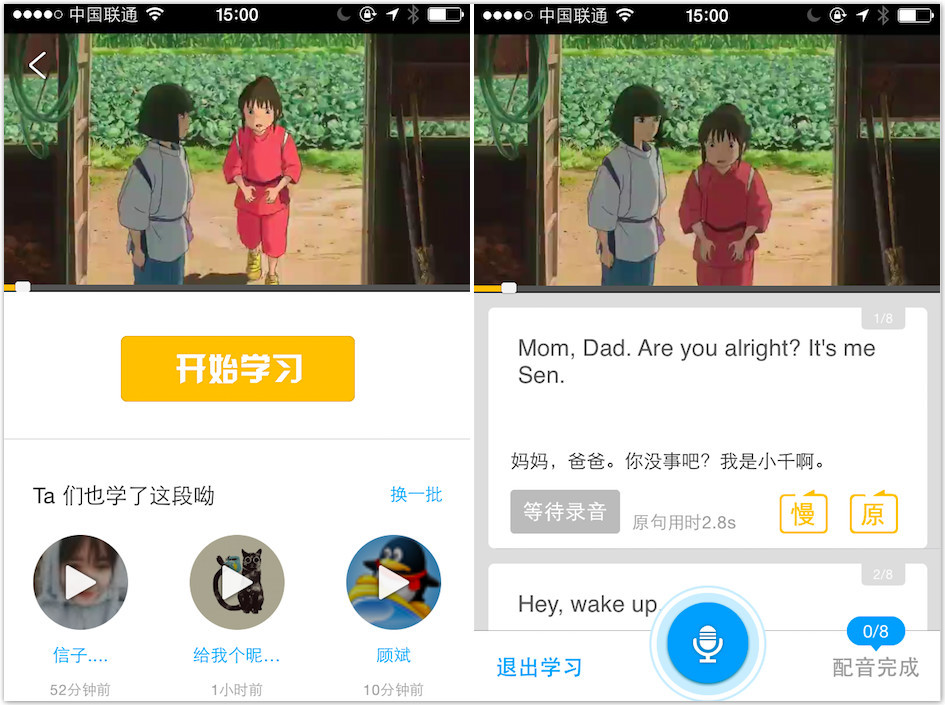 英语魔方秀是一个我们报道过多次的英语学习app了。不过Gavin一直不希望用户把这款产品当成一个很重的“学习”产品,而是希望对英语感兴趣、美剧、欧美电影的爱好者们,可以在边看电影的过程中边学习一门语言。所以他们的产品就将美剧等剧目分割成可学的视频片段,并加入跟读、模仿,以及社交化的PK功能,甚至最后做成配音秀,让用户根据自己对影视作品的理解输出自己的作品,并分享到社交网络。