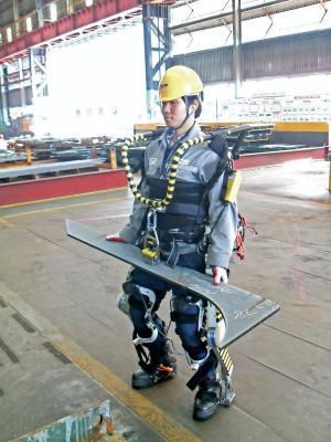 最近韩国一家造船厂就为工人制作出一种可穿戴的机械设备,穿上后,工人可以轻松举起厚重的钢铁材料。