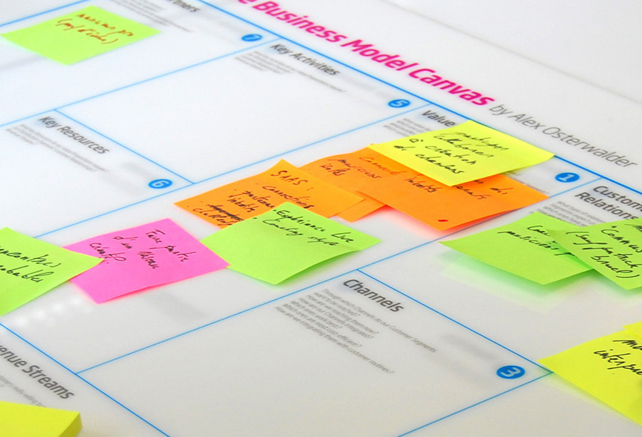 1) 先将猜想和计划写在便签纸上,展开最基本的商业模式;