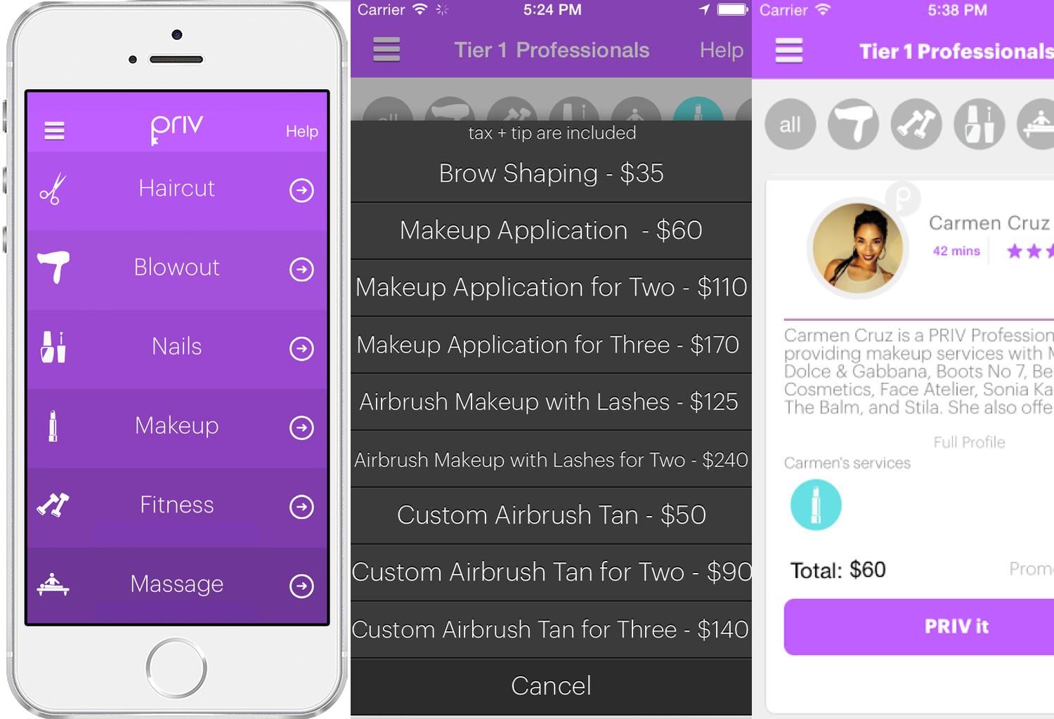 不管是国外还是国内,On-demand都在变成一股潮流,从按需配送食品的Instacart、快餐服务(Sprig等),Uber,再到各类上门服务业比如上门取件的干洗服务(Washio)、美发(Vensette)、以及刚报道不久的“河狸家”美甲,私人穿搭师服务(“完美衣橱”),上门私厨“爱大厨”等等。PRIV也是一款按需服务的美容休闲服务平台,跟其它初创公司专事一类服务不一样,它一开始就是全垒打,包括剪发,美甲、化妆、推拿等等。