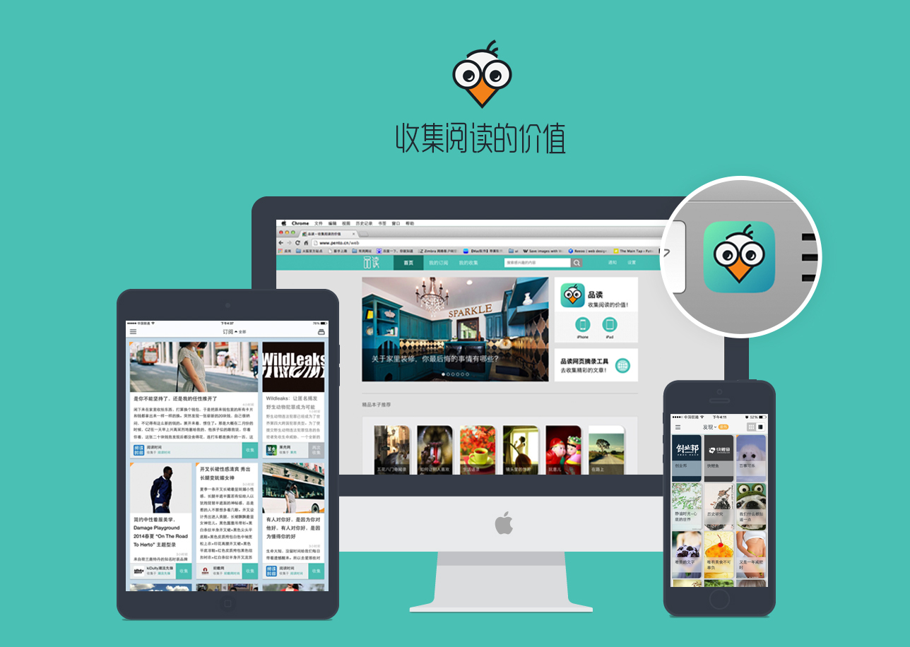 首先它是一个内容的聚合平台,将各个Source的内容抓取过来并对阅读体验进行优化(文、图、视频效果都不错),比如重新排版、内容去重等等;不过跟单纯的聚合平台不一样的是,“品读”发动了UGC的力量对文章进行二度筛选,以某一主题编辑成“本子”,对Pinterest而言就是收集在不同的面板里;而其它用户可以“订阅”某一本持续关注相关兴趣点的内容。此外,“品读”还有类似Pocket的Web端文章收藏功能,这显然有利于用户能把更多Source的好内容引入到“品读”上,这跟Pinteretst让用户把站外的精美图片导入自己平台上是一个道理。