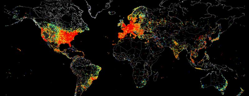 如上图所示,绝大部分设备都集中在发达国家以及其它地区的大都市。