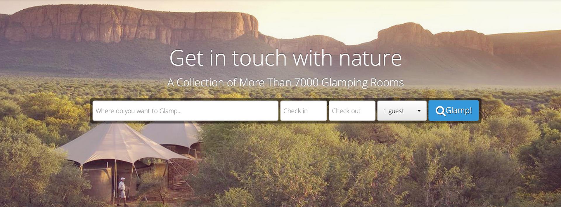 Glamping Hubs于2012年在旧金山成立,但开发团队在西班牙。Glamping Hubs把世界各地的露营地信息收集起来,方便旅行者预定。他们提供了各种各样“奇葩的”露营地,包括了树上旅馆、蒙古包、旅行帐篷、小木屋、大巴改装的旅店、印第安人的圆锥帐篷等等,现在他们收集了1006个分布在世界六大洲的露营地,价格从几十美元到上千美元不等。