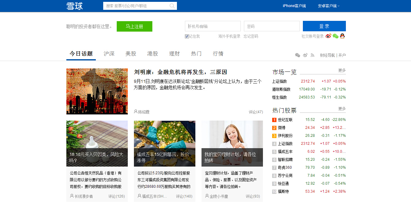 1.产品上越显颓势的人人,反而在投资上越发风生水起。今天早上,36氪获知雪球网刚刚完成了新一轮 4000 万美元融资(应该是 C 轮),领投方人人公司!