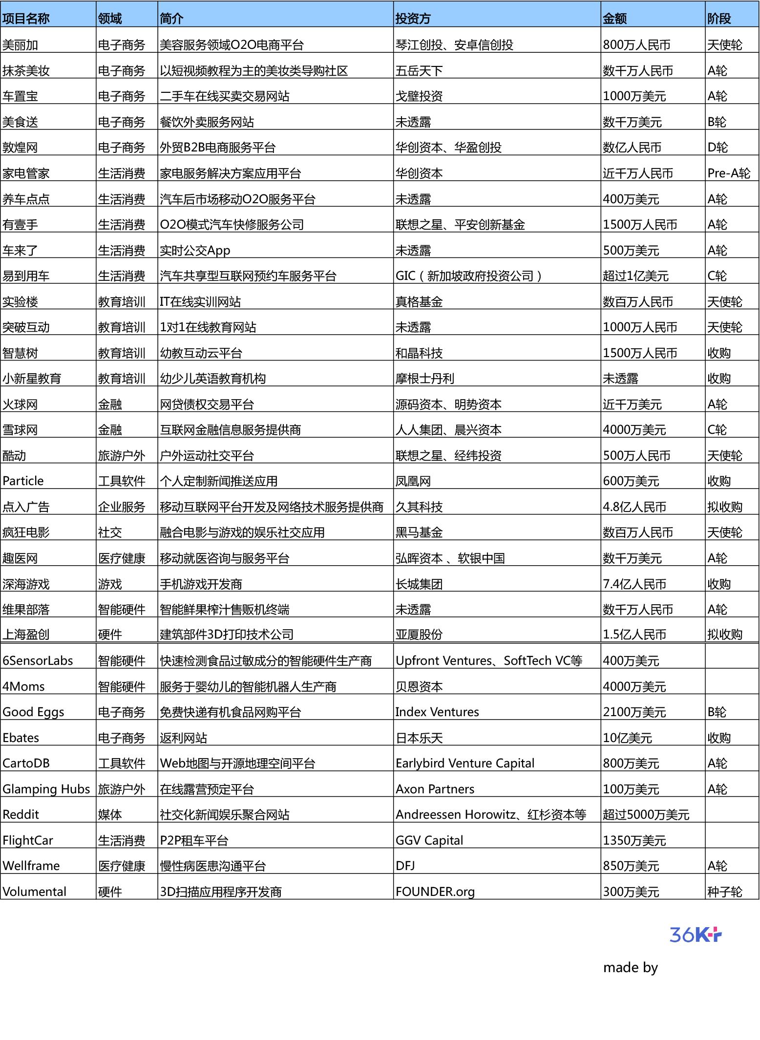 氪加是36氪旗下的创业服务平台,我们整理收录每周的国内外创业项目投融资数据供业内朋友阅读研究。以下是 09.08—09.14 国内外完成的创业项目投融资情况数。