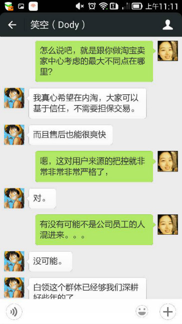 昨天聊 了个项目叫“内淘网”,觉得有意思的地方是它搭建的围绕公司白领群体的“信任经济”,要求用户通过公司邮箱注册,而“内淘网”则帮助用户解决一系列生活问题,目前深耕的重点是“自产自销”和“单身”两个问题。其它包括“闲置二手”、“租房/房产”、“宠物交换”等等,总之是一个垂直于公司白领的生活信息、交易平台。由于家里电话信号实在太差,于是通过微信做了个采访,笑空是其创始人: