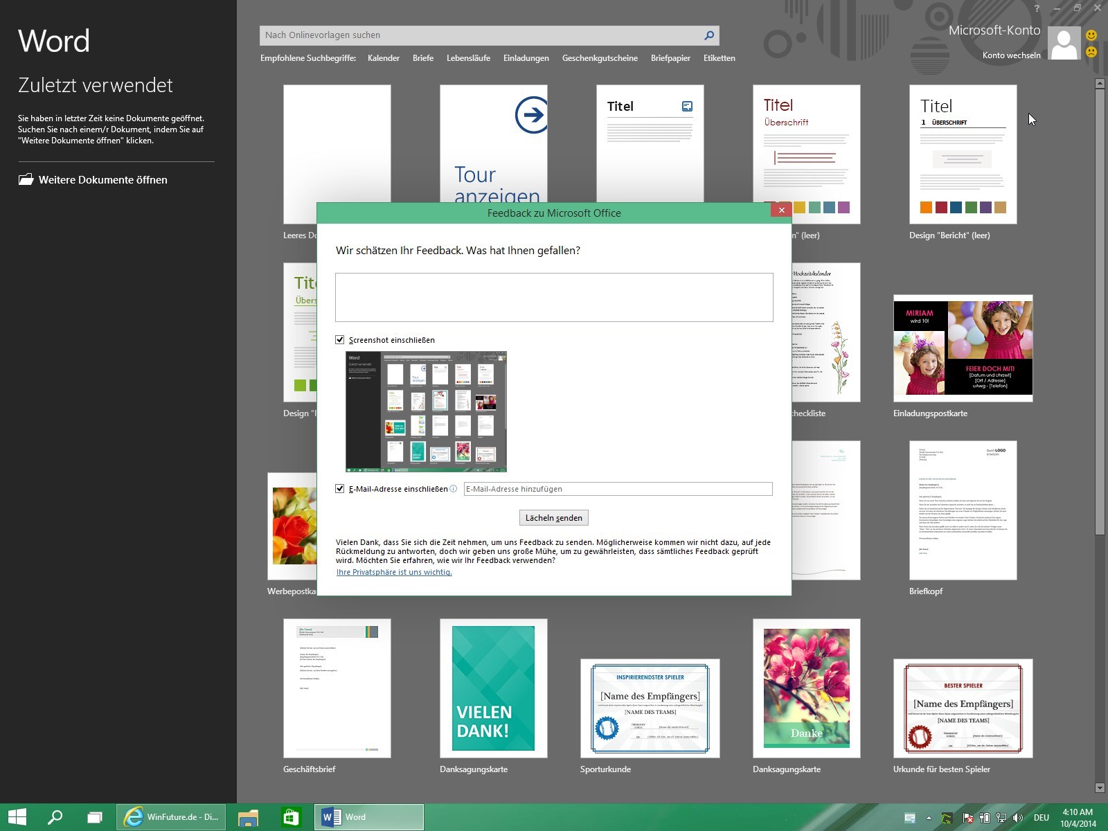 【Update】德国网站 WinFuture.de 放出了两张关于技术预览版中反馈信息提交的截图。
