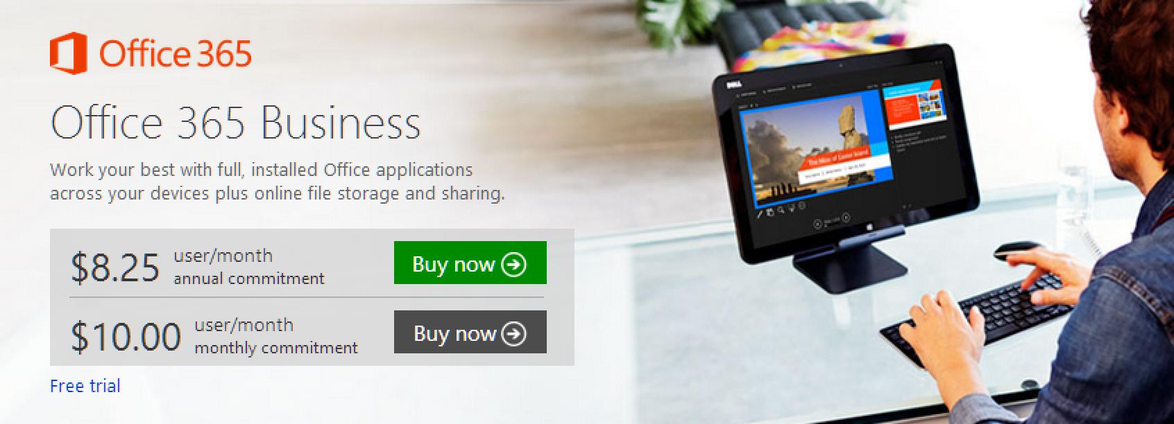 Office 365 Business:包含完整的 Office 套件(Outlook、Word、Excel、PowerPoint、OneNote、Publisher 和 OneDrive for Business),可以在 Windows PC、Mac、iPad、Windows 平板和智能手机(iOS、Android 和 Windows Phone )上使用。