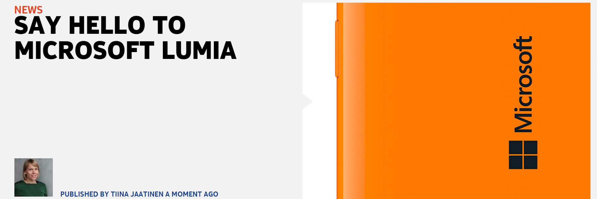 微软官方博客宣布用 Microsoft 品牌替换 Nokia 品牌冠名 Lumia 系列智能手机。于此同时,微软手机方面市场高级副总裁 Tuula Rytilä 在 Nokia Conversation 的采访中表示微软会继续出售 Nokia 品牌的入门级手机(如现在的 Asha 新趣系列,及 Nokia 130 等入门级功能手机)。