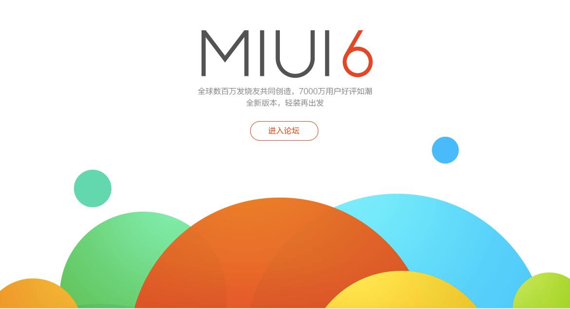 MIUI 6于今年8月16日正式发布,采用了全新的扁平化设计和独特的配色风格。在功能方面,MIUI 6加入了诸多新特性,如图标篮子、批量整理、批量删除等。同时MIUI 6带来了新的内存管理策略,能够让手机运行更加稳定。MIUI 6还新增了以小米黄页和小米生活两款产品为主导的小米生活服务平台,为用户提供号码识别、陌生号码拦截、生活服务查询和购买等服务。